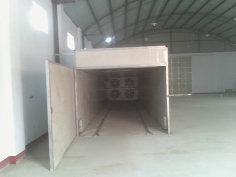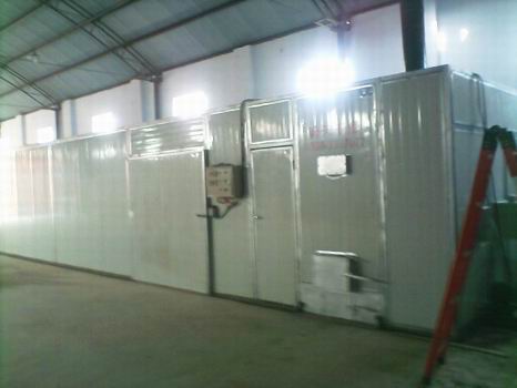 該干燥設(shè)備采用的是連續(xù)性烘干作業(yè),主要有干燥室、烘干車、料盤、供風(fēng)系統(tǒng)、熱風(fēng)爐、自動電控系統(tǒng)等構(gòu)成。干燥室采用金屬保溫板或磚混結(jié)構(gòu),烘干盤采用金屬或其他材料制作。