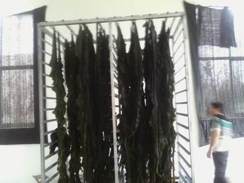 我國海岸線延綿上萬公里,海帶種植面積很大,但如何將天然鮮海帶變成干海帶,幾乎是靠天氣,而且曬出的干海帶的質量也很不穩(wěn)定;這幾年,我公司在山東威海某海產品科技公司的協(xié)助下,研制開發(fā)了一種天然鮮海帶烘干機,它幾乎可以添補天然原始海帶烘干的空白。